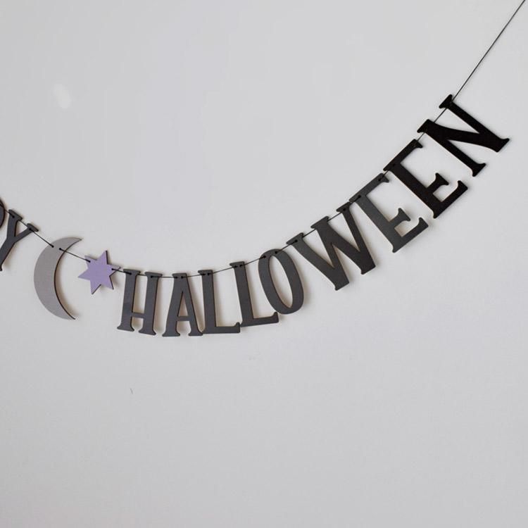 HAPPY HALLOWEEN・ムーン・ヘキサグラム ウッド ガーランド