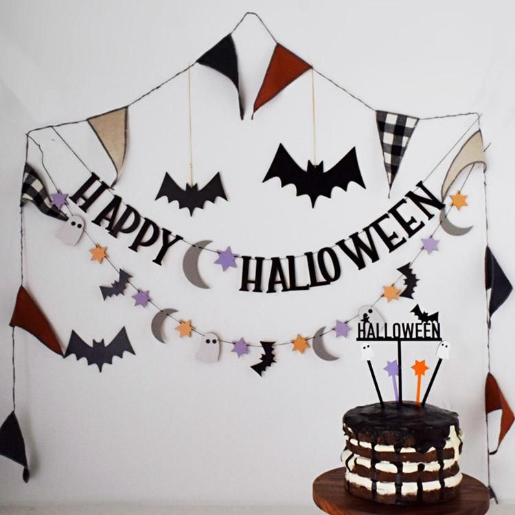 内容文字(HAPPY HALLOWEEN)・ムーン・ヘキサグラム・ひも2.5m