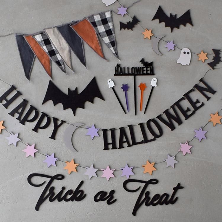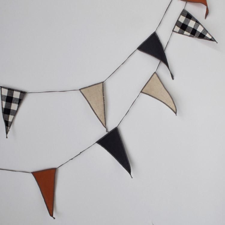 HALLOWEEN LIMITED ギンガムチェック柄ファブリック miniガーランド 12フラッグ(リネン・コットン)全長2.5m