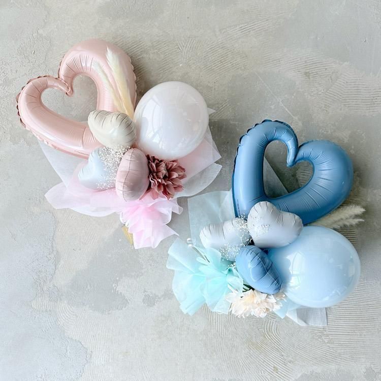 ブーケ型◆ 40cm BLUEハート&ラウンドバルーンブーケ ◆ギフト・卒業・誕生日バルーン・お祝いギフト◆長持ちバルーン【オプション:名入れ550円】